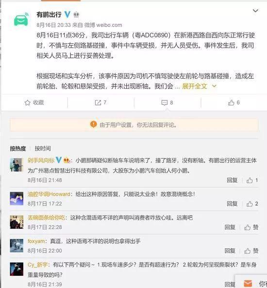 他稱,自己和李斌、何小鵬的關系遠比大家想象的要好。他個人也是蔚來汽車的股東。“我們的目標市場是這個級別的燃油車,從技術路線、市場選擇,我們不認為和蔚來汽車有任何的競爭關系。”他還表示,“類似這樣陰謀論的猜測就到此為止吧,給我們這些長征路上的新造車企業多點時間和精力,讓我們用在技術、產品、質量、服務上。”而另一家新造車企業小鵬汽車近日也因隱患頻現而備受質疑。在“隱瞞新車上市,引發車主維權”的風波仍未平息的情況下,小鵬G3又疑似發生斷軸,再次將其推上風口浪尖。8月16日,一輛小鵬G3在正常道路行駛時,發生疑似“斷軸”事故。“有鵬出行”在隨后發布的聲明中稱,該事故系碰撞所致,并未發生斷軸。